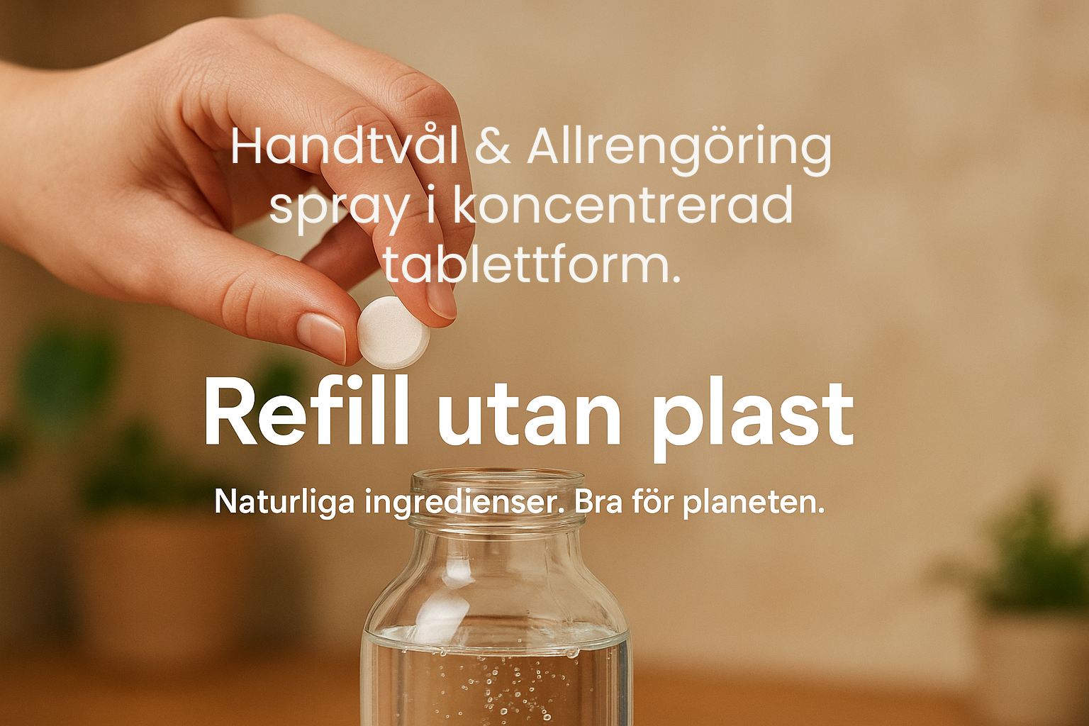 De flesta refillprodukter säljs i ännu en plastförpackning. Med EkoBubbla får du koncentrerade tabletter – inget vatten, ingen plast. Bara växtbaserad kraft du blandar med kranvatten i din egen flaska.