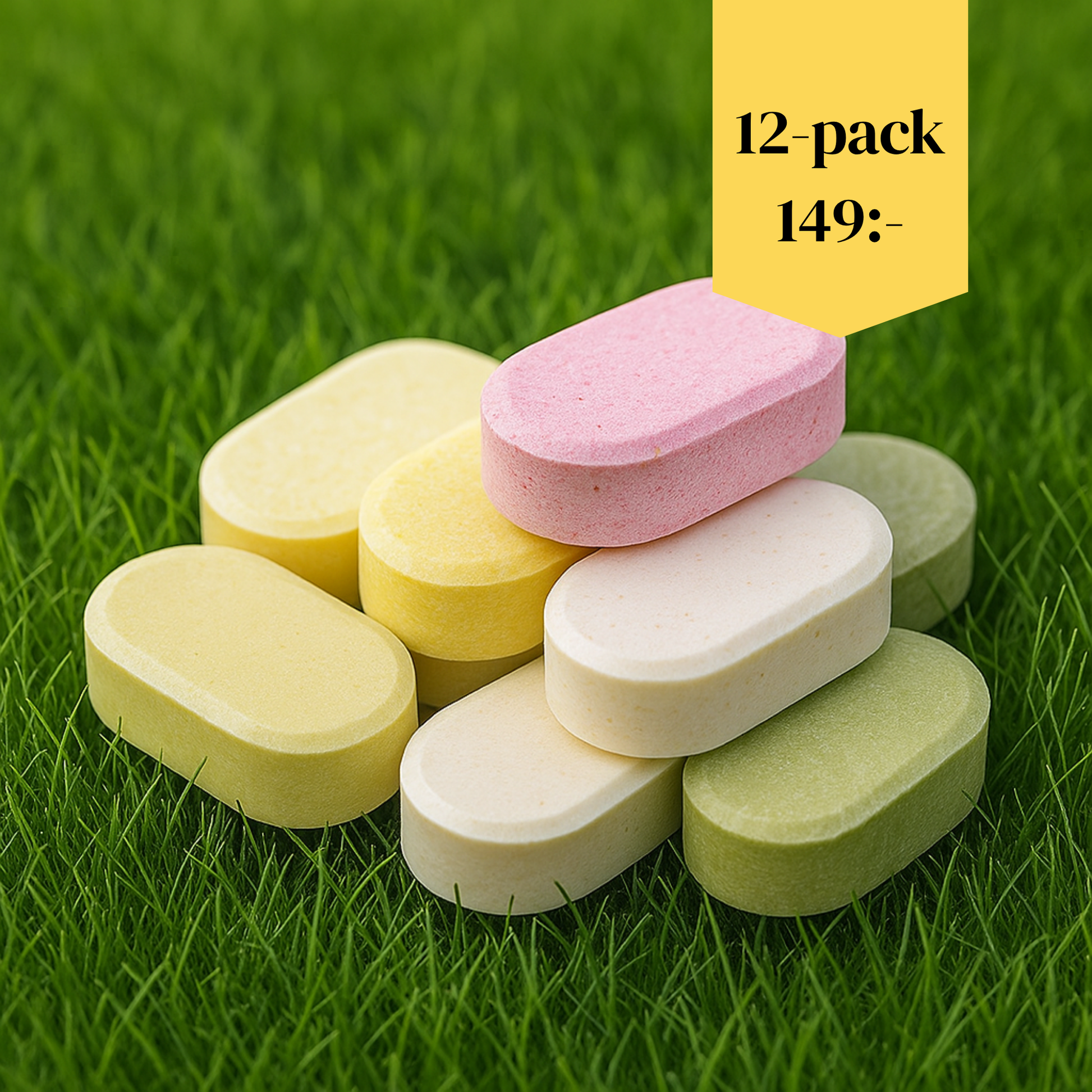EkoBubblas handtvålsserie består av milda, växtbaserade refilltabletter som du enkelt blandar själv hemma i din favoritflaska. Du slipper plastförpackningar, sparar plats och minskar både avfall och utsläpp.
